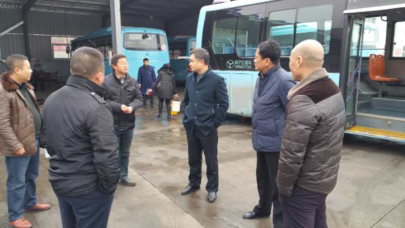 為應(yīng)對冰雪惡劣天氣,確保線路營運(yùn)車輛安全行車。2016年11月23日下午,荊門公共交通集團(tuán)公司常務(wù)副總經(jīng)理張國軍、常委委員王群華帶領(lǐng)營運(yùn)安全部對三個(gè)公交營運(yùn)公司防凍防滑物資準(zhǔn)備及當(dāng)天車輛運(yùn)行情況進(jìn)行巡查。