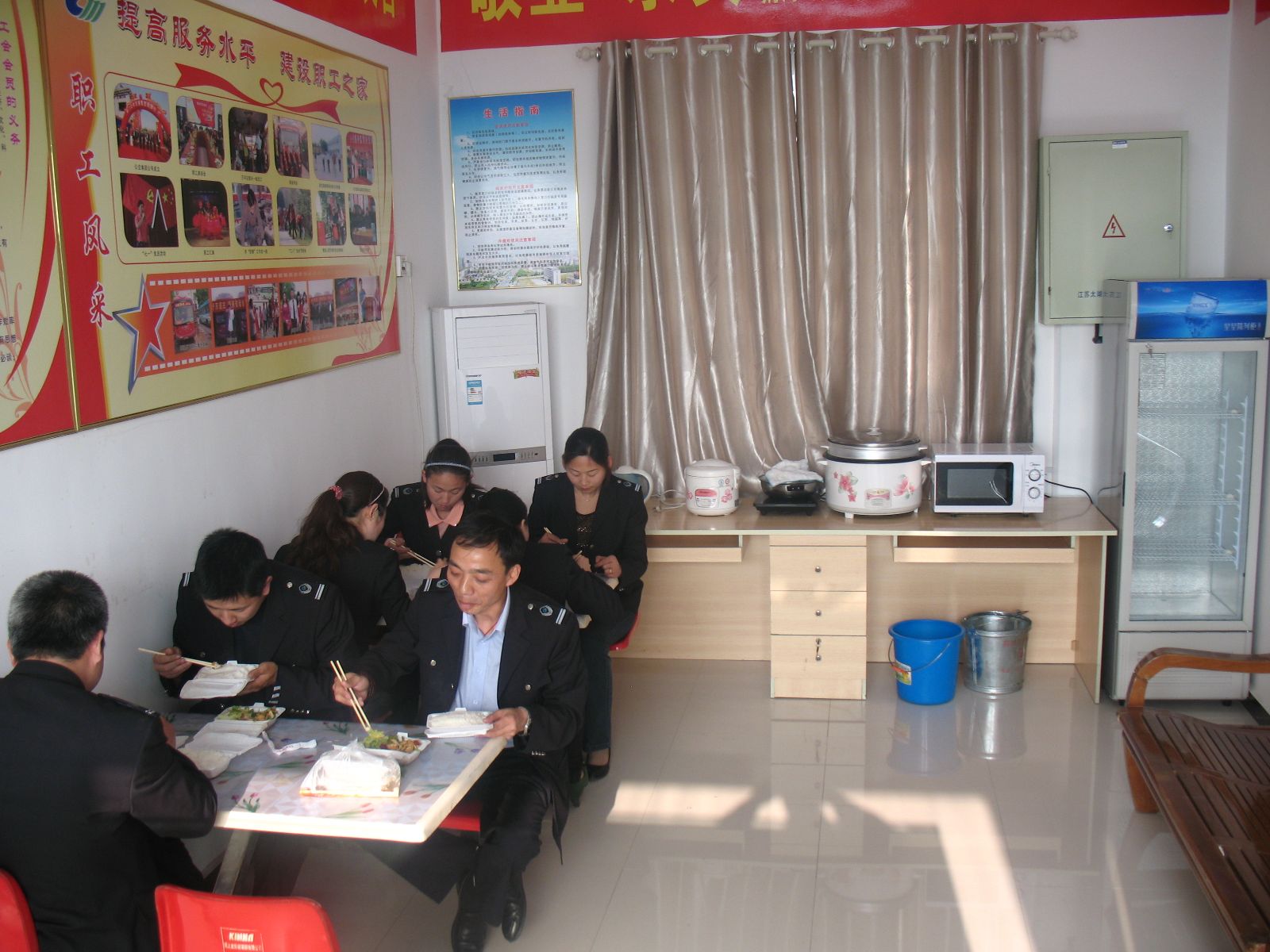 為了給駕駛員創(chuàng)造良好的工作生活環(huán)境,公司出資購買了保鮮柜、微波爐、開水壺、桌椅、空調(diào)等日常生活設(shè)施,使駕駛員能吃上熱飯,喝上熱茶,盡最大努力幫助、呵護(hù)一線員工,真正的為他們帶去一絲關(guān)懷和溫暖。為方便市民乘車,公司還要求所有調(diào)度室、站務(wù)室免費(fèi)對乘客開放,為市民提供咨詢服務(wù),解決乘客飲水難、入廁難等便民之需。