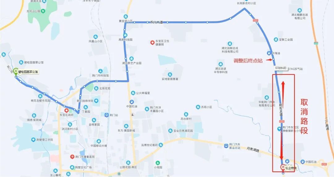 具體為:碧桂園翡翠公館—宏業(yè)物流調(diào)整為碧桂園翡翠公館—環(huán)球科陽(yáng)(荊東大道),暫時(shí)取消荊東大道與長(zhǎng)崗一路交匯處—宏業(yè)物流區(qū)間路段(具體走向圖見(jiàn)附件)。道路施工結(jié)束后即恢復(fù)原線路運(yùn)行。
