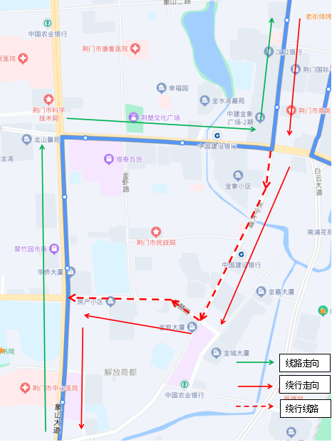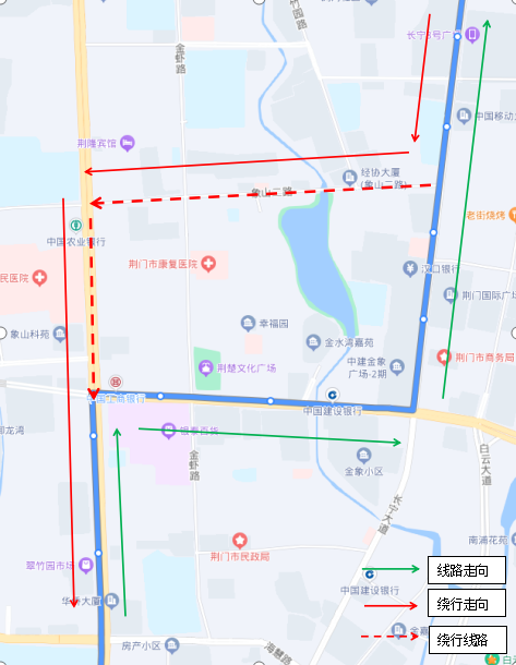 調(diào)整后新增??空军c:瀏河橋(西側(cè))、金寧小區(qū)(西側(cè))、荊門電視臺(西側(cè))、鳳臺社區(qū)(北側(cè))、?;壑袑W(北側(cè))。